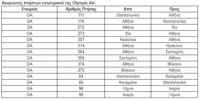 Ακυρώσεις πτήσεων εσωτερικού της Olympic Air:
